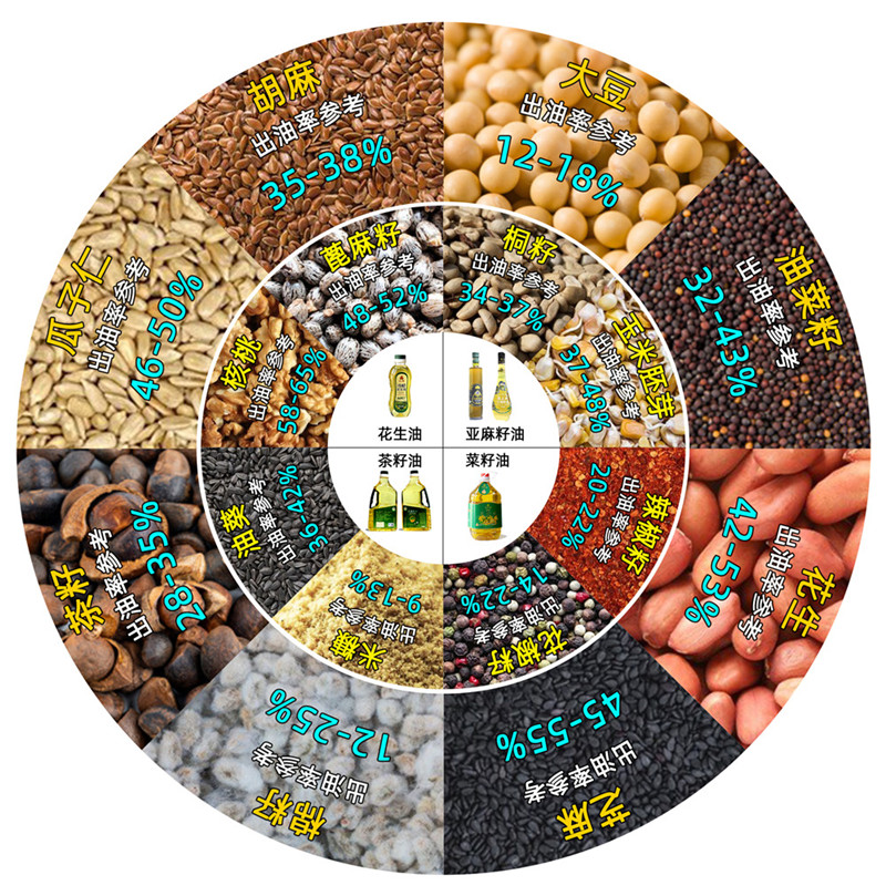 食用油的原料從草本植物到木本植物,多大幾十種,油料的形狀和特點都有所不同。為了達到較好地出油效果,不同的原料在生產中需要的處理工藝也不同,如茶籽需要先經過烘干,再脫殼、破碎、調質后才能較好地出油,菜籽則不需要脫殼。確定好油料品種可以為原料預處理階段的設備配置做決定。